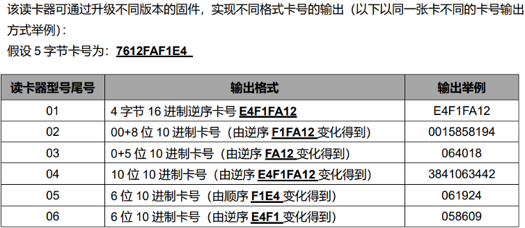 RW163J-XX | USB模擬鍵盤口 XX取值01-20,不同型號輸出格式不同 | EM4001,EM4100,TK4001,TK4100及其兼容卡 |