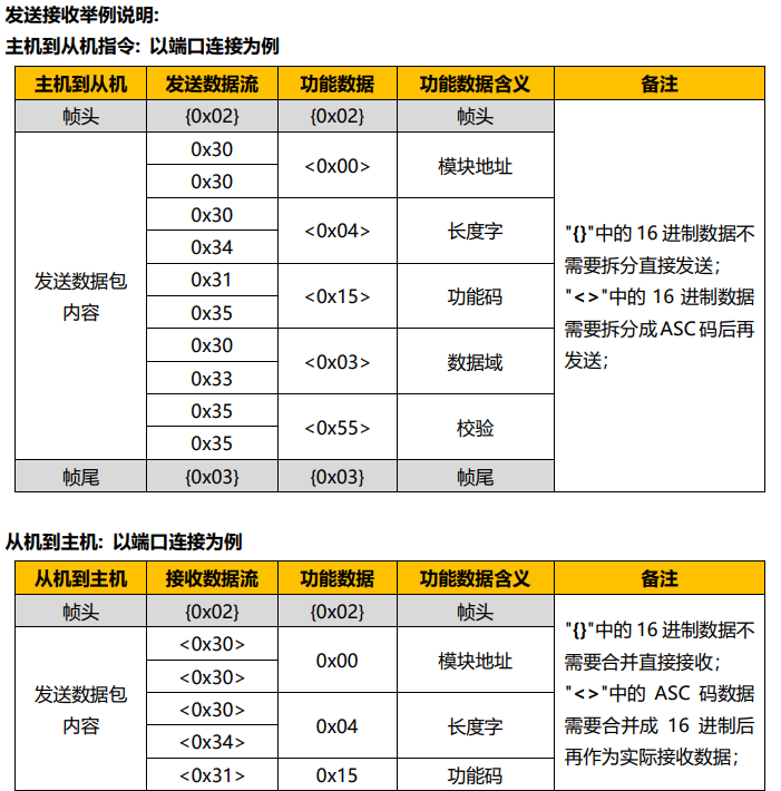 注:發送數據包內容和接收數據包內容均為ASCII碼數據。