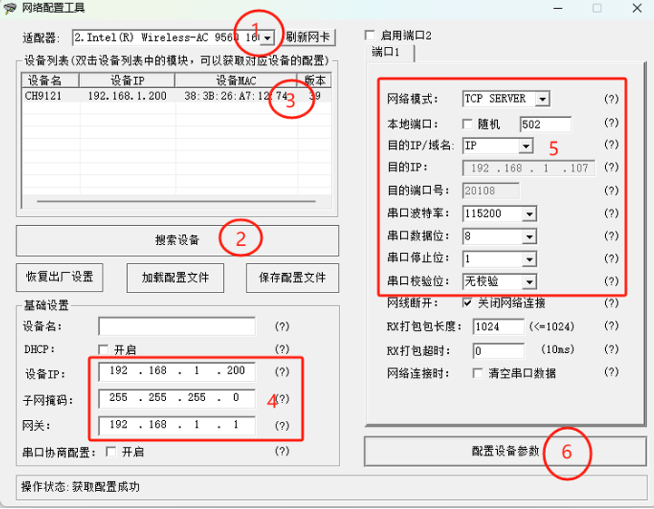 (5)網(wǎng)絡(luò)模式選擇TCP Server,讀卡器端口Modbus一般設(shè)置為502