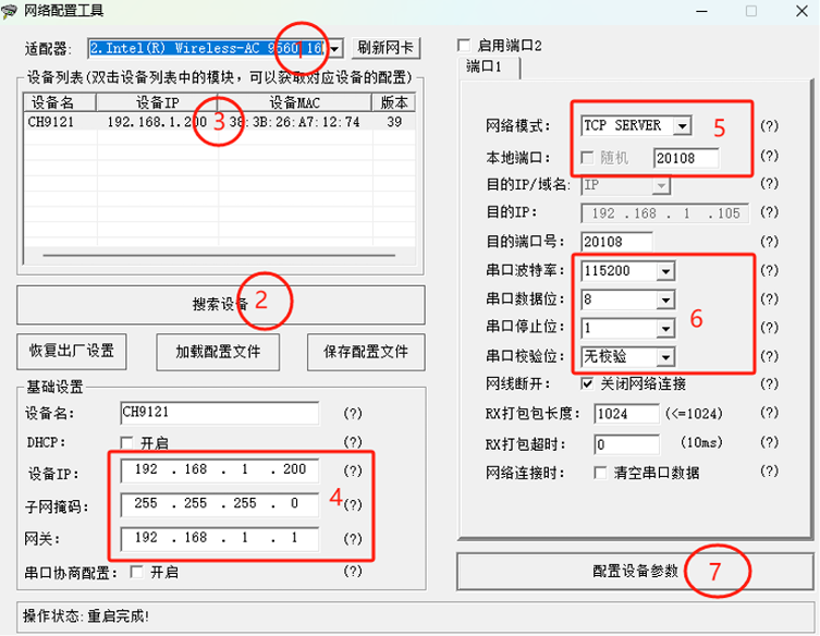 (5)網(wǎng)絡(luò)模式選擇TCP Server