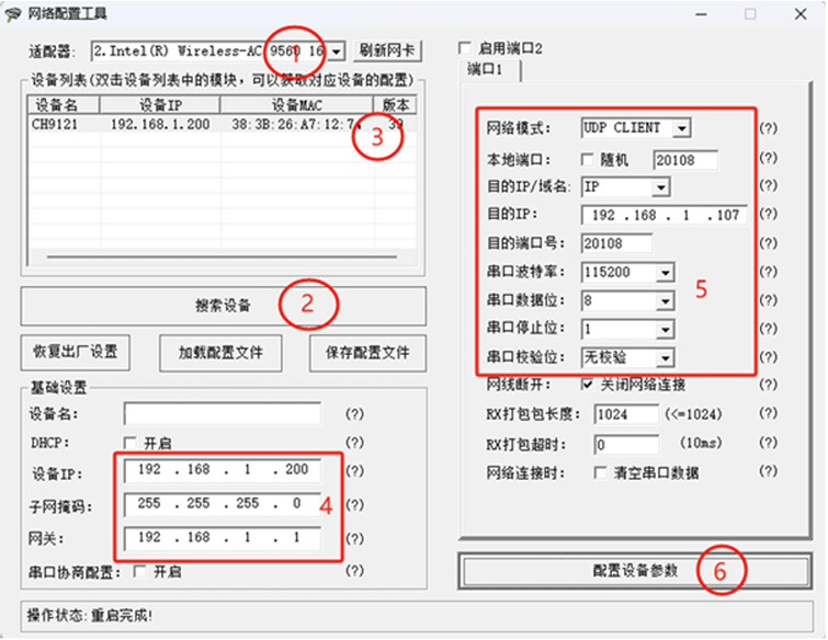 (5)網(wǎng)絡(luò)模式選擇UDP Client;