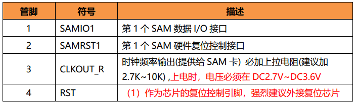 M536as | UART接口 支持4個SAM卡 | SAM9600,SAM38400,SAM115200, ISO7816-4 CPU卡 T=0/T=1卡片 |