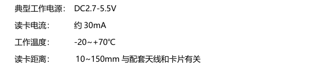 - 讀卡距離:10-150mm(與天線和卡片的尺寸有關)