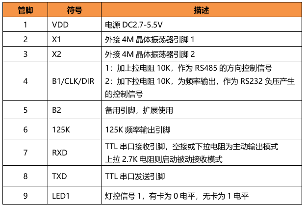 - 支持125K ID卡:EM4001/TK4001/EM4100/TK4100及其兼容卡片